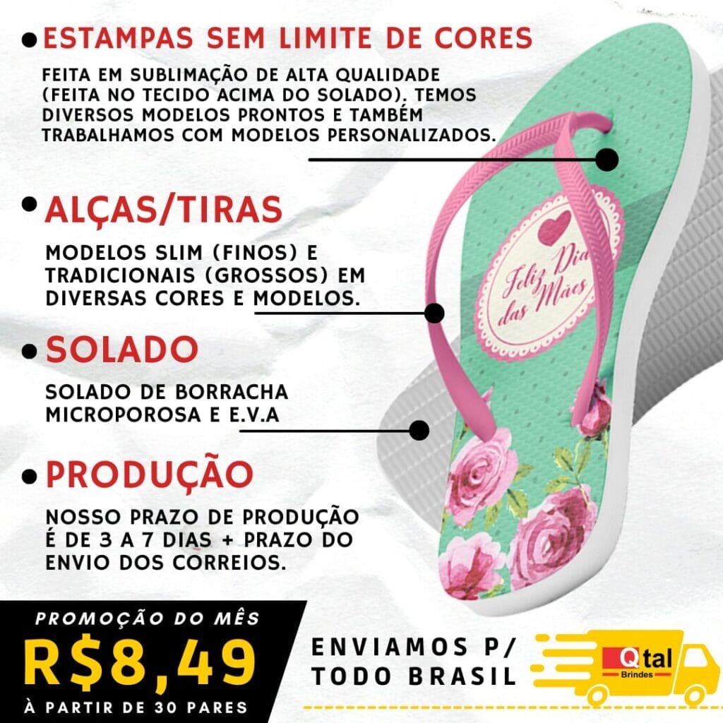 Os Chinelos Personalizados são produzidos em borracha na cor branca. Estampado por meio de Sublimação no tecido acima do chinelo onde as impressões não desbotam e podem ser lavado normalmente.